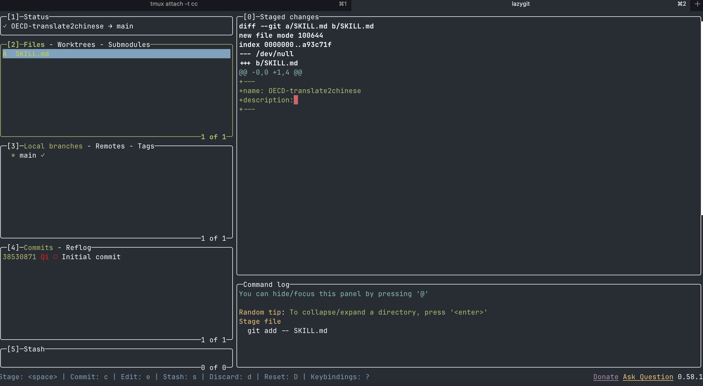 space键即可(等价于git add SKILL.md) - 如果对所有文件暂存则可以按
