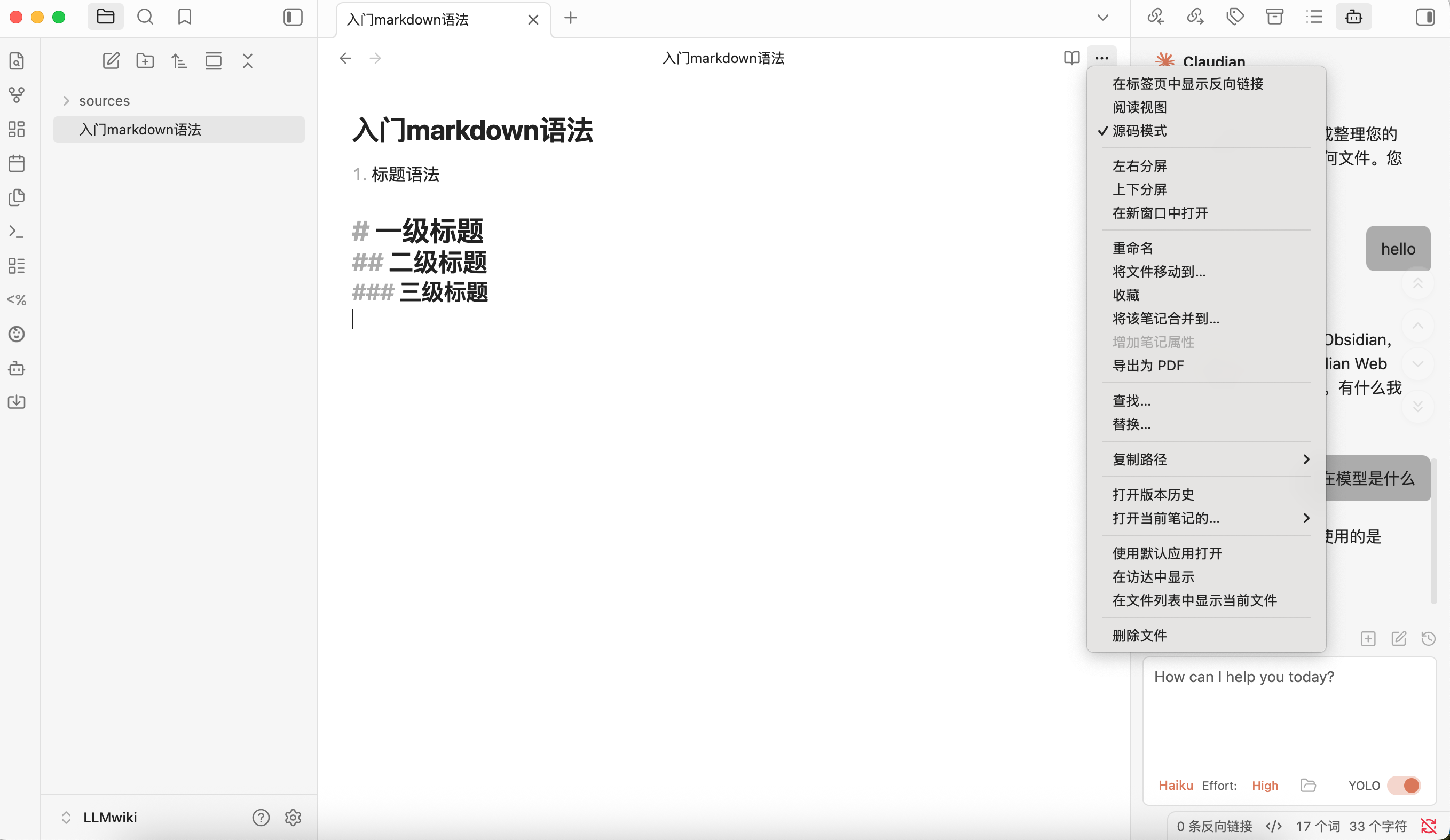 下面是Obsidian和Markdown基础语法的了解,相当于用法,还是需要熟能生巧