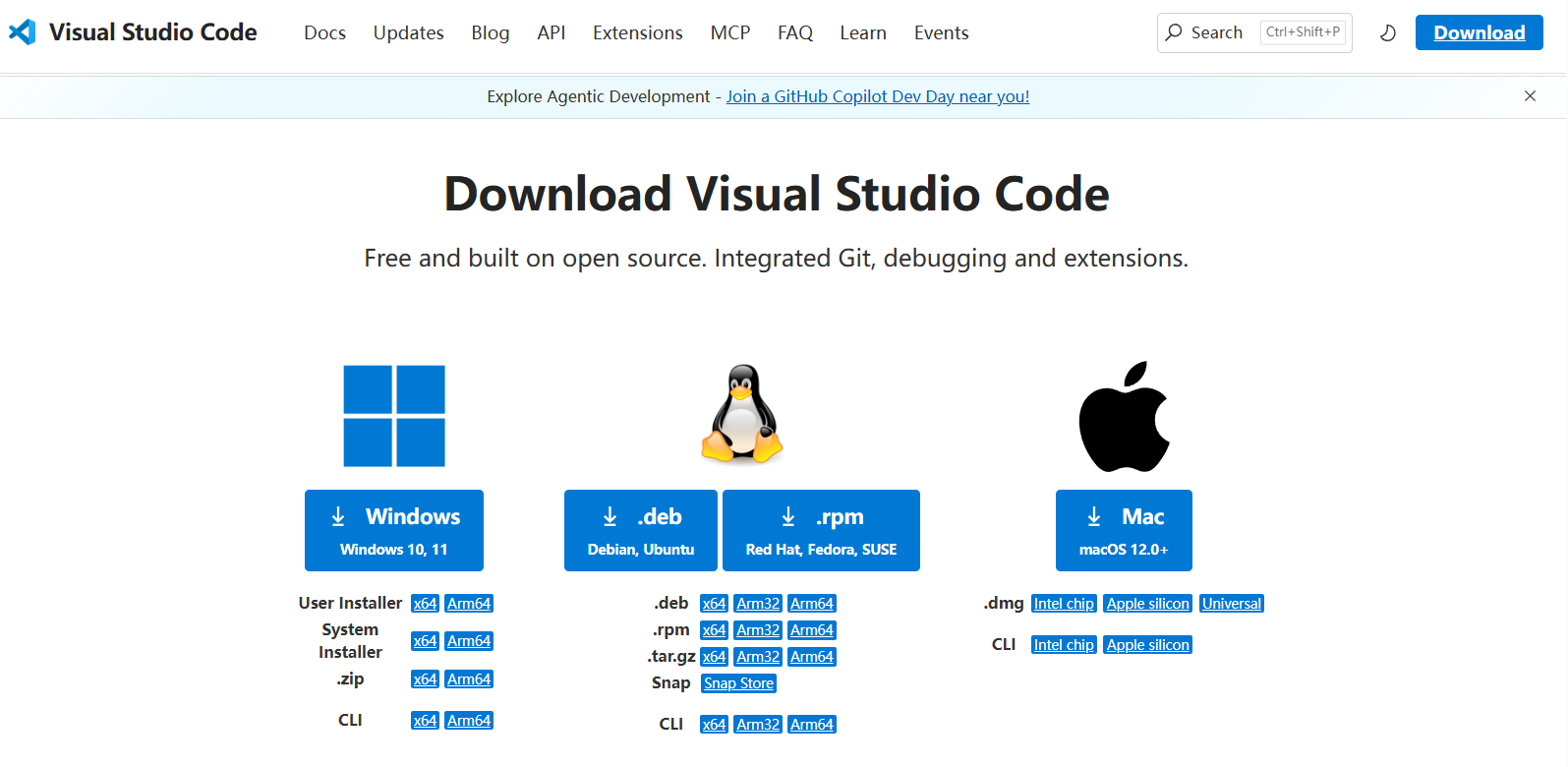 VSCode Visual Studio Code(简称 VS Code)是一款由微软开发的轻量级、跨平台代码编辑器,支持多种编程语言和扩展功能,轻量化的王者